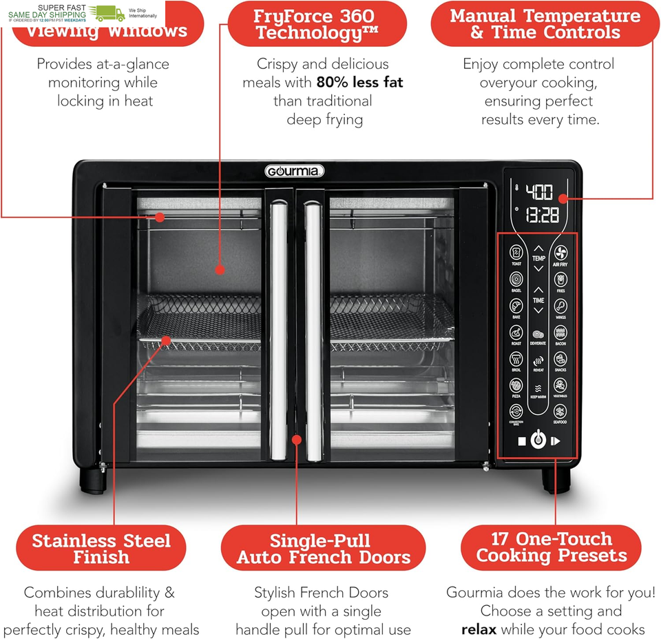 1700W French Door Digital Air Fryer Oven 24L Capacity Accessories, Convection Ra