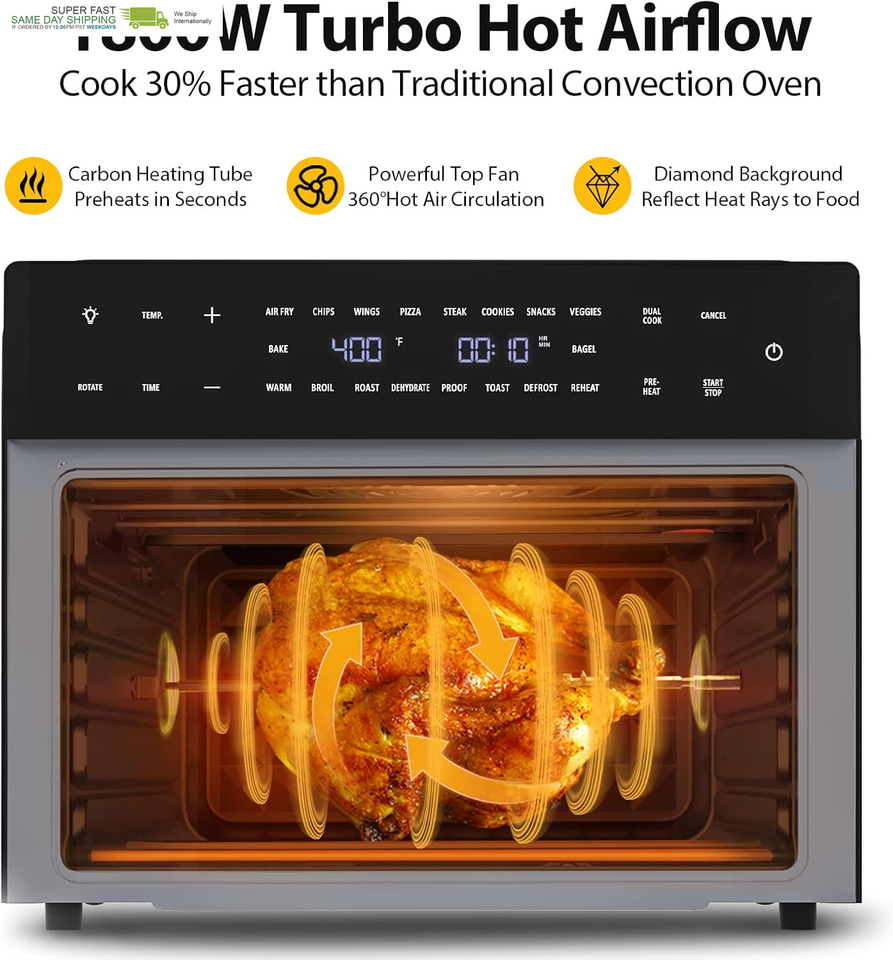 19-In-1 Air Fryer Toaster Oven Combo with Rotisserie and Dehydrator, Digital Con
