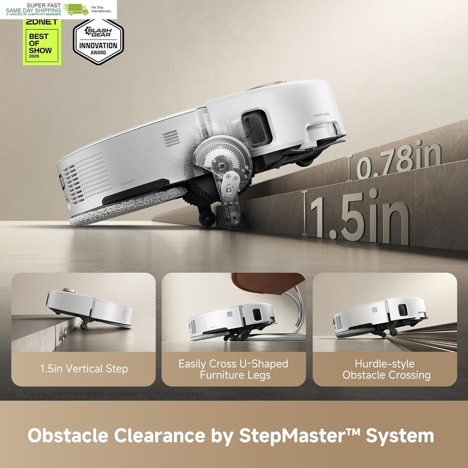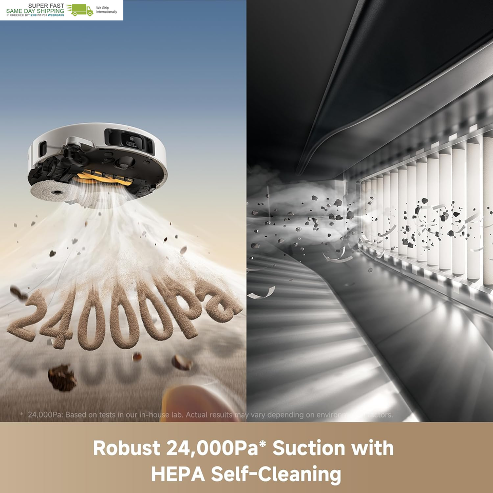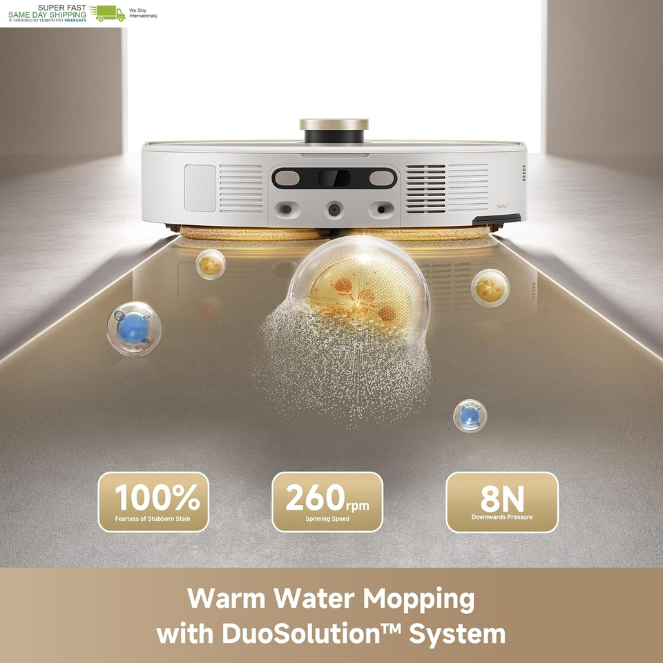 24,000 Pa Suction, Liftable Navigation with Obstacle Overcoming and Warm Water Mopping with Duosolution System Designed for Pets