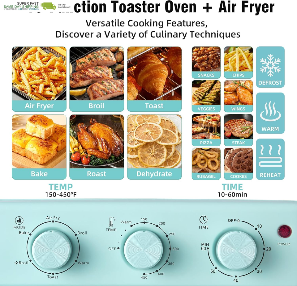?? User-Friendly Controls? Designed with three intuitive knobs?mode, temperature, and time?you can easily set your cooking preferences. Whether roasting chicken, baking cookies, or air frying French fries, this toaster oven air fryer combo makes cooking effortless.