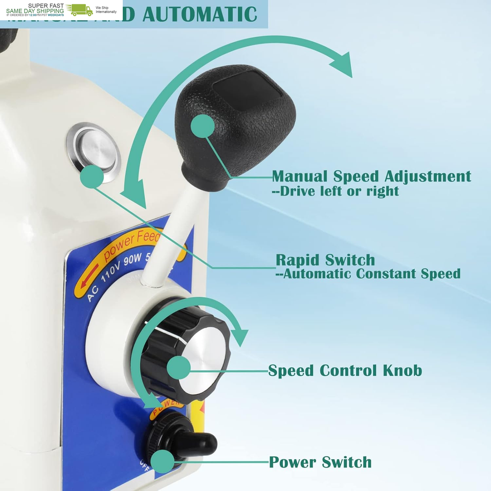 AUTOMATIC AND MANUAL CONTROL: You can set this power feed to work at automatic constant speed to free your hands or work by manually adjusting the speed control knob to do more precise milling work.And this multifunctional milling machine power feed can work with excellent speed control in the entire range according to your needs.