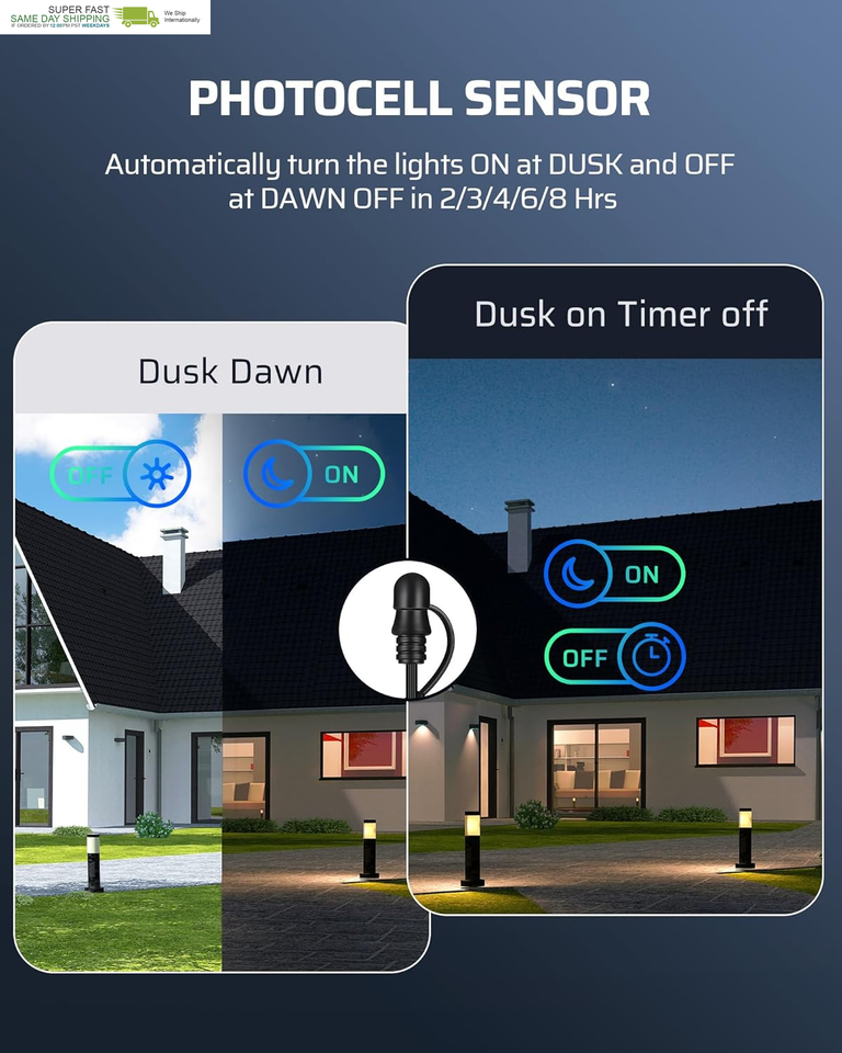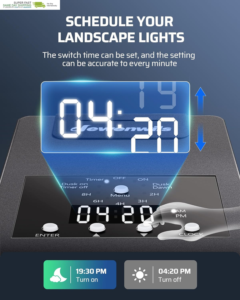 [6 Modes] 6 modes are available -Manual ON/OFF, Dusk on to Dawn off, Dusk on to Countdown off, Dusk on to Timer off, and Timer on to Timer off; you can choose different modes according to different needs with a simple press of button(Please note the transforemr not for Halogen light)