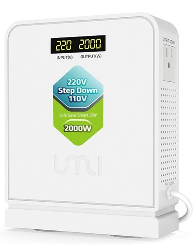 ?MULTI-FUNCTION?UMI Power Converter 110v to 220v works with kinds of 220v or 230v electric appliances, devices and equipment. Such as hair dryer, coffee maker, rice cooker, blender, mixer, air fryer, toaster, robot vacuum and so on.