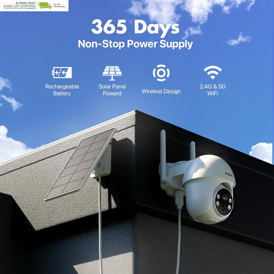 Wireless Solar Powered IP65 Waterproof: The 2K Sola rCamera Outdoor Security is equipped with a high-conversion solar panel to provide continuous power supply. No power cord and network cable are required, 365 days of uninterrupted charging, away from power supply troubles. With IP66 waterproof design, the outdoor security camera can be stably installed outdoors and easily cope with various extreme weather.