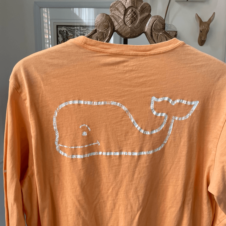 Vineyard Vines Long Sleeve Pocket Tee Whale Orange M