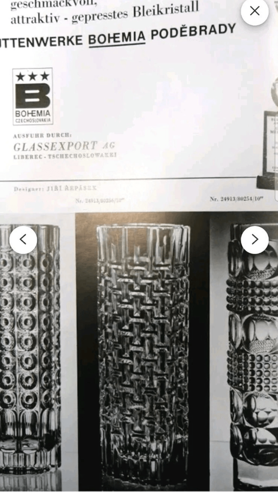 The design of this vase was created by the renowned artist Jiri REPASEK in 1975. The last photo in the gallery shows this vase as new to the market in the magazine from the March 1975 issue.
