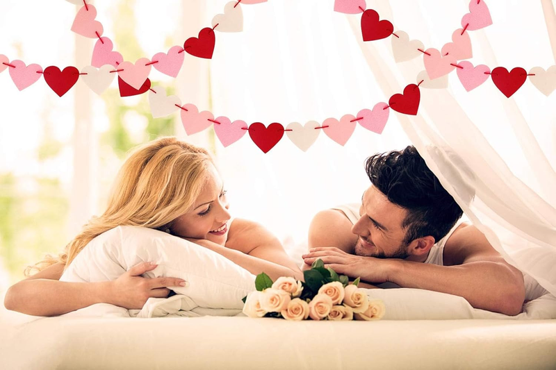 VALENTINES DECORATIONS BANNER - The banner shows your love and thanks to the one you love, nice choice for Wedding, Valentine's day and other holiday celebrations. Perfect size for Wedding, Valentine's day and for home, mantel, fireplace bunting garland decoration. The be mine banner come preassembled and ready to hang.