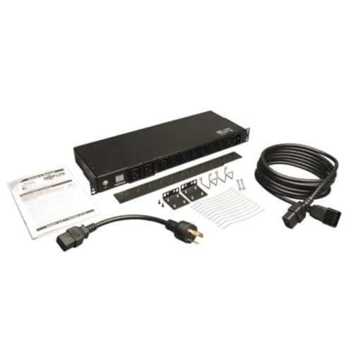Product description: Power Distribution Unit, Built-In Circuit Breaker Yes, Color Black, Cord Length 12 ft, Number of Outlets 10, Receptacle Type (2) C19, (8) C13, Maximum Input Voltage 230V AC, Outlet Surge Protection No, Metered Metered, Rack Units 1, Mounting Location Horizontal Rack, Plug Type NEMA L6-20P, Features Rear Grounding Lug, Housing Material Metal, Includes 12 ft Power Cord, Manufacturers Warranty Length 2 yr, Maximum Current 16 A, Maximum Operating Temperature 104 Degrees F