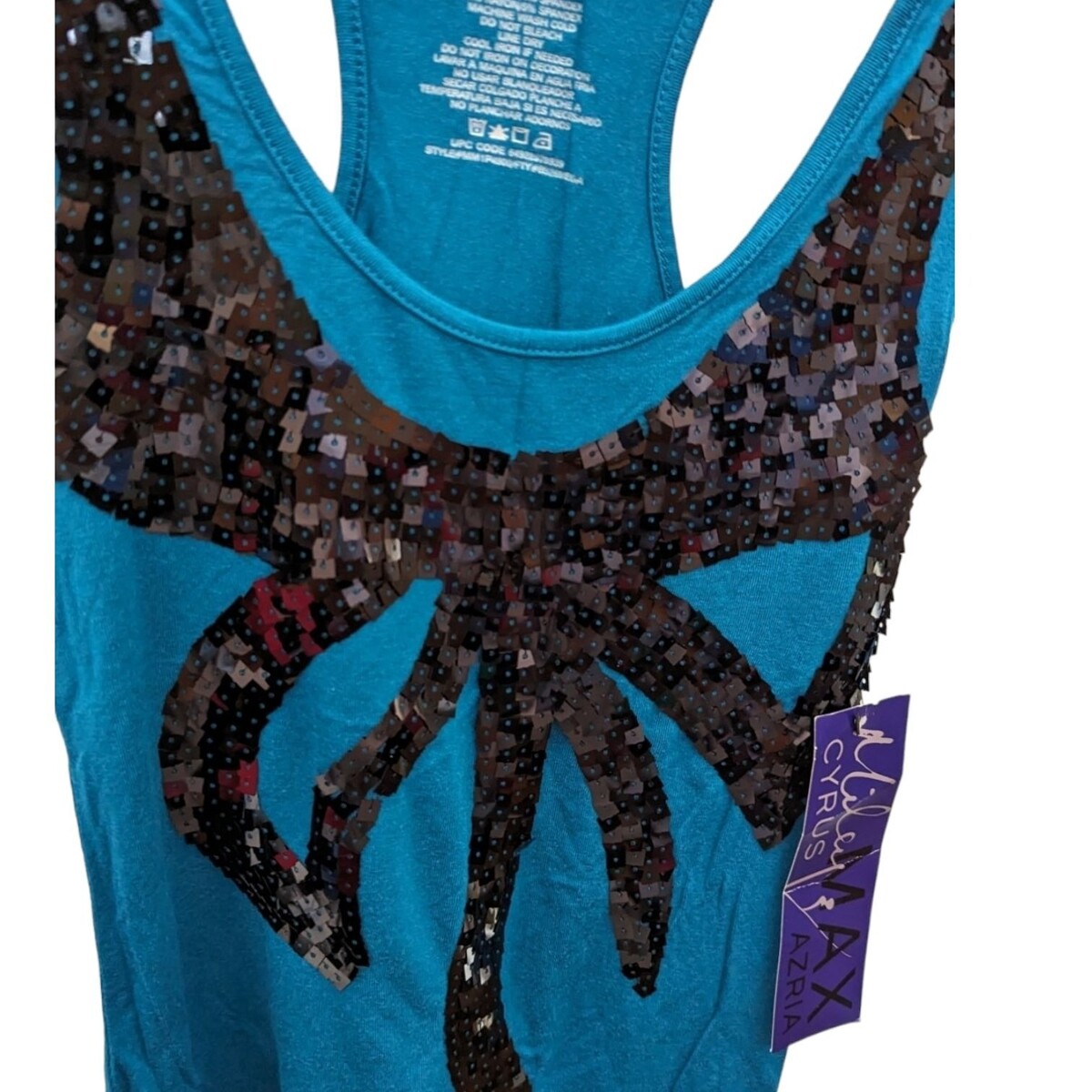Miley Cyrus Max Azria Teal Blue Black Sequin Scoop Neck Racerback Tank Top XS