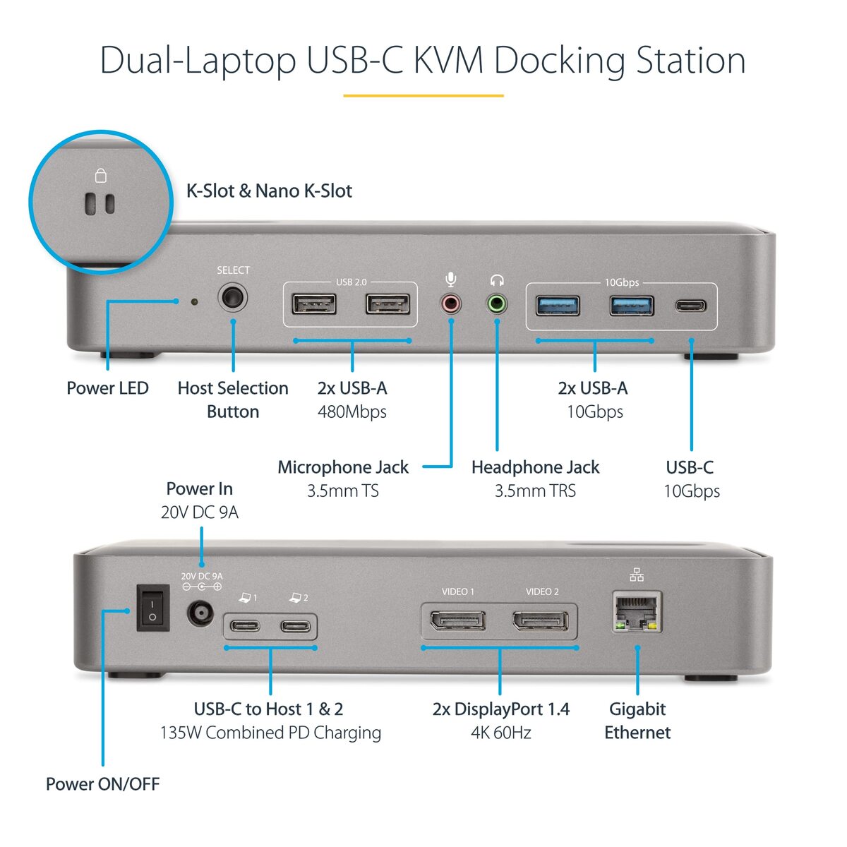 StarTech.com Dual-Laptop USB-C KVM Docking Station, Dual Monitor 4K 60Hz Display