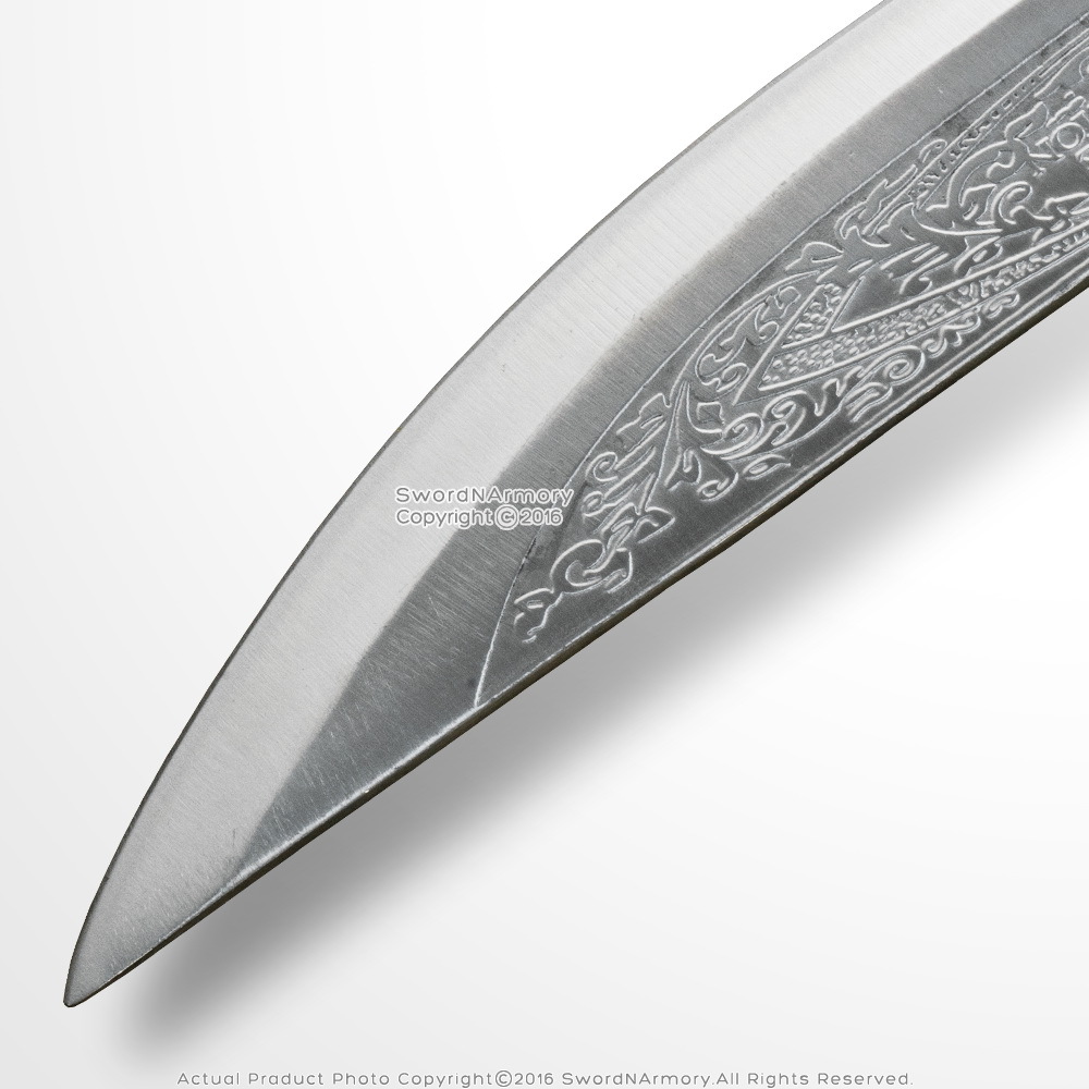 [Blade] The blade of the dagger has been constructed from 440 Stainless Steel. An acid etched design decorates the top of the dagger. The dagger comes sharpened.
