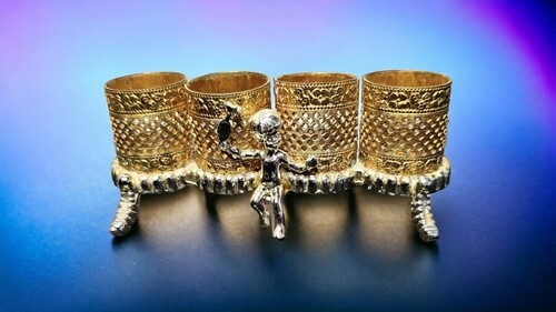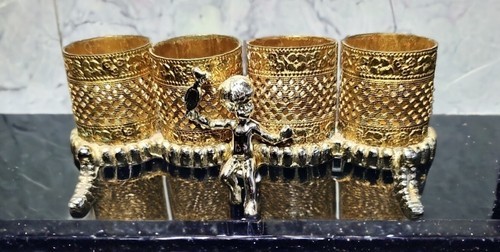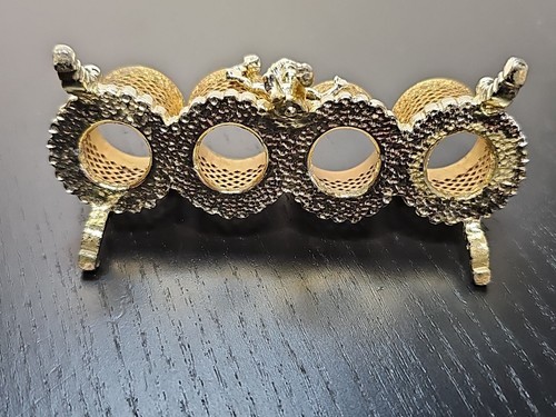 UP FOR SALE: Vintage 1950-60s Sam Fink Filigree Ormolu Goldtone Vanity Lipstick Holder Cherub