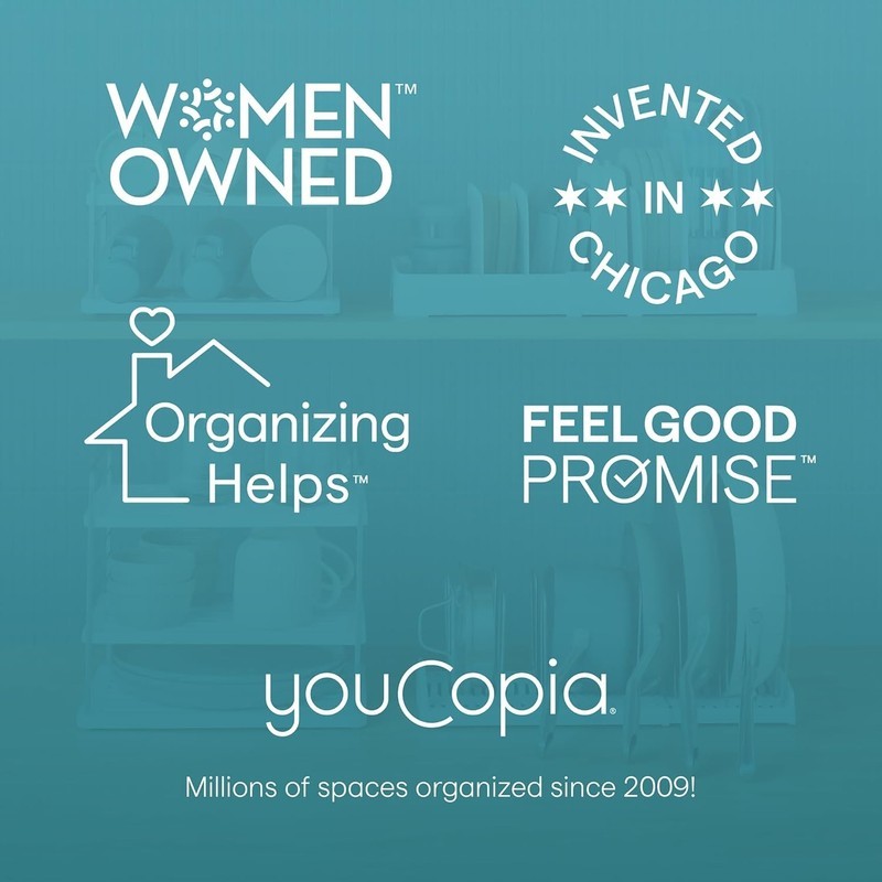 From YouCopia's Organizing Hero? Collection, the best-selling StoreMore Bakeware Rack is now redesigned with a fresh look and (even) better functionality. It stores pans, baking sheets and cutting boards upright while taking up minimal space in your cabinet or pantry. StoreMore Bakeware Rack includes seven coated steel wires that adjust to fit and protect your items (no more stacking!) against scrapes and scratches. A sturdy, non-slip base keeps everything in place. The StoreMore Bakeware Rack helps you locate and remove any piece of bakeware without a major cabinet search. When kitchen essentials are organized, you?ll be baking like a pro.