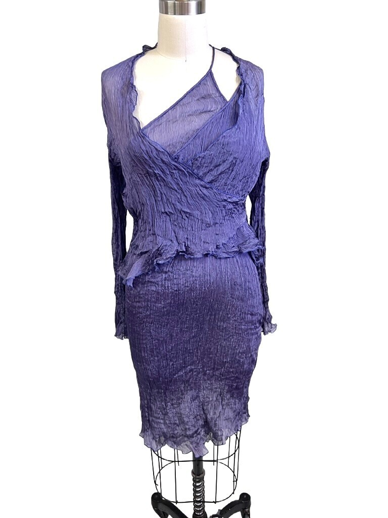 emporio armani dress woman size XS Purple Micro Pleated SHeer