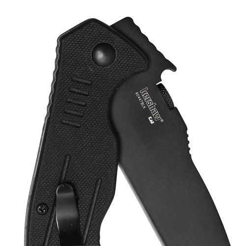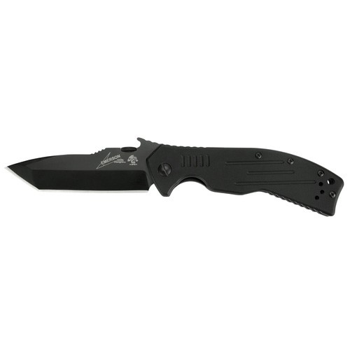 The Kershaw Emerson CQC-8K (6044TBLK) is a hard-use tactical folding pocket knife built from the Kershaw/Emerson collaboration?designed for fast deployment and reliable daily carry. It features a 3.5 in black-coated tanto blade with a strong tip for piercing and an aggressive profile for utility cutting.