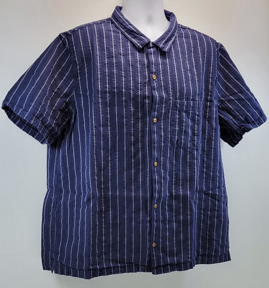 A) Gap Men Button Down Navy Blue Striped Standard Fit Ripple Cotton Shirt XXL
