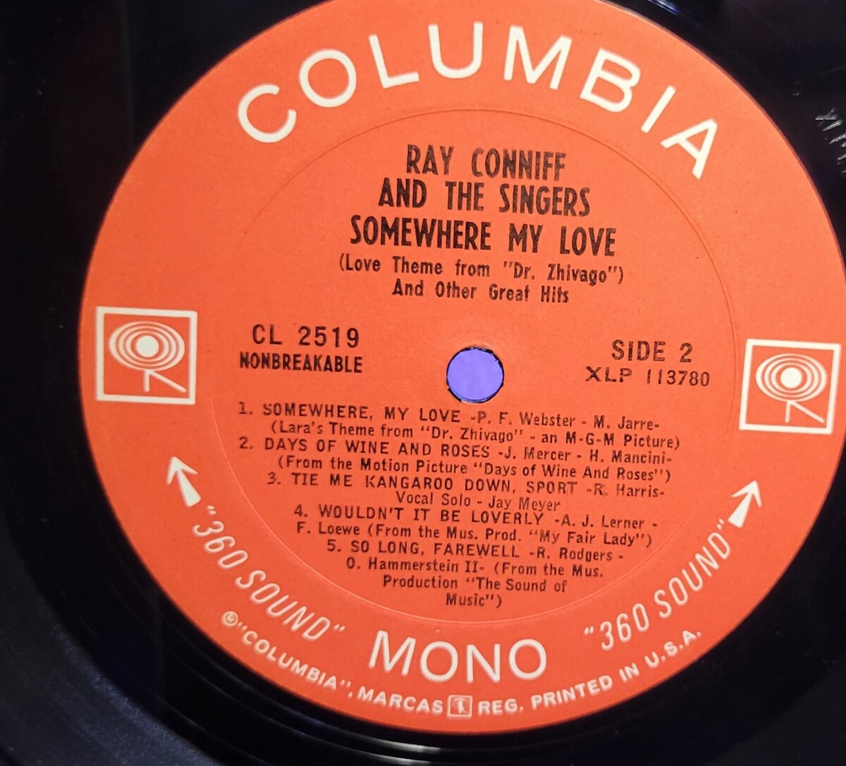 Ray Conniff - Somewhere My Love - Columbia Records - CL 2519