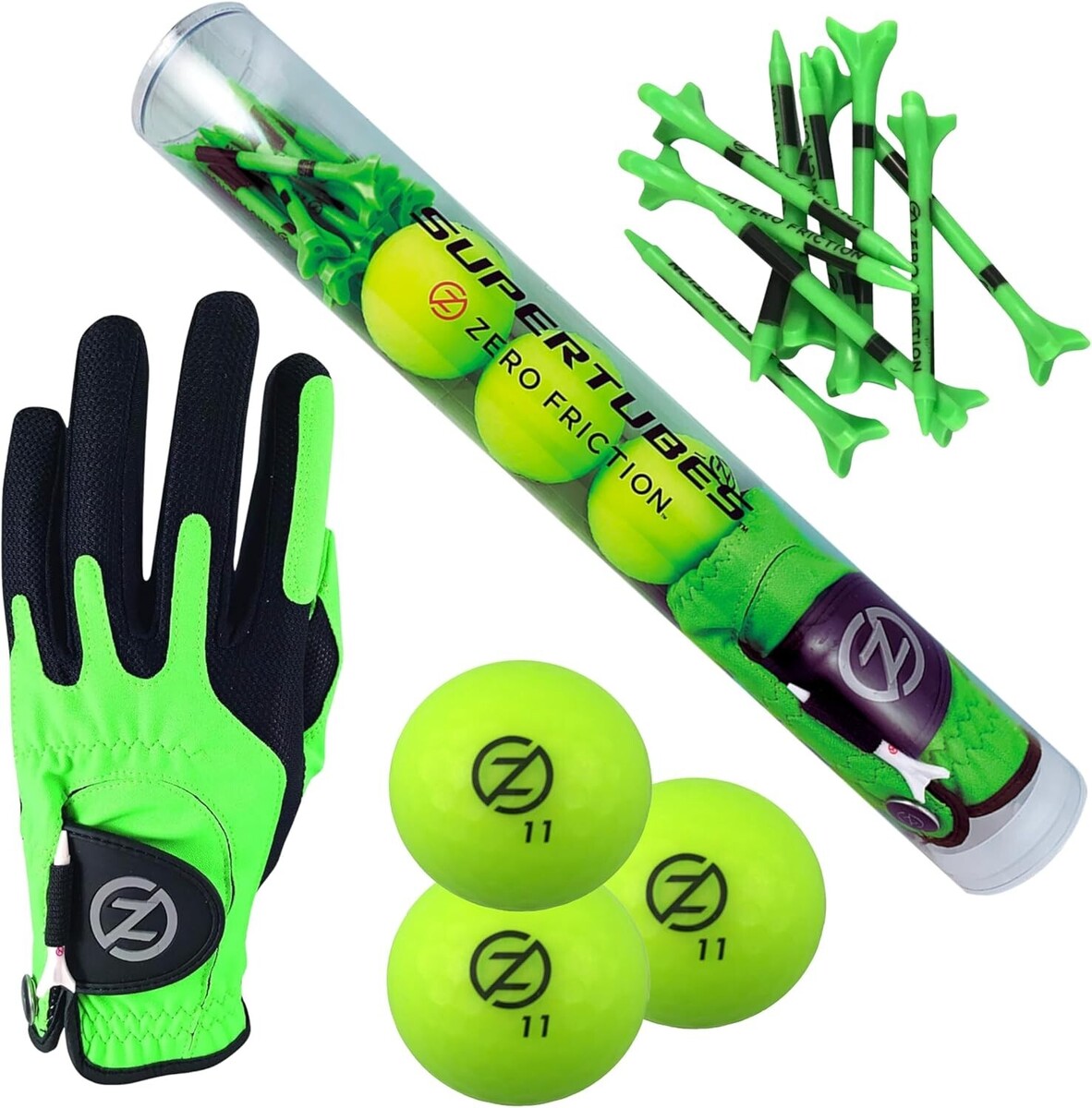 SALE Zero Friction Men's Golf Super Tube, Glove, Golf Balls and Tees. White.