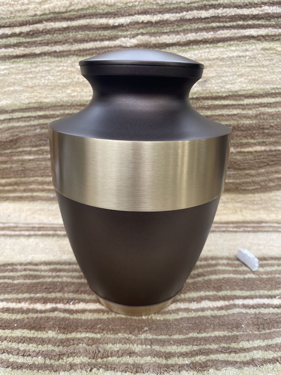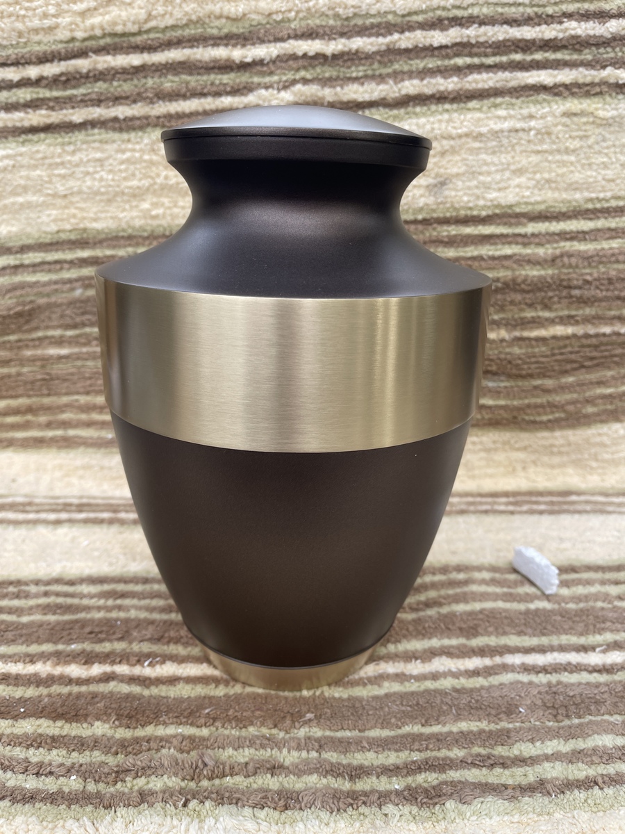 Grecian Brown Gold Stripe Adult Brass Cremation Urn Ashes