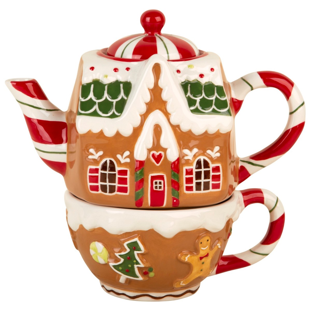 3pc Xmas Gingerbread House Teapot W-Gingerbread Design Mug Set of 2