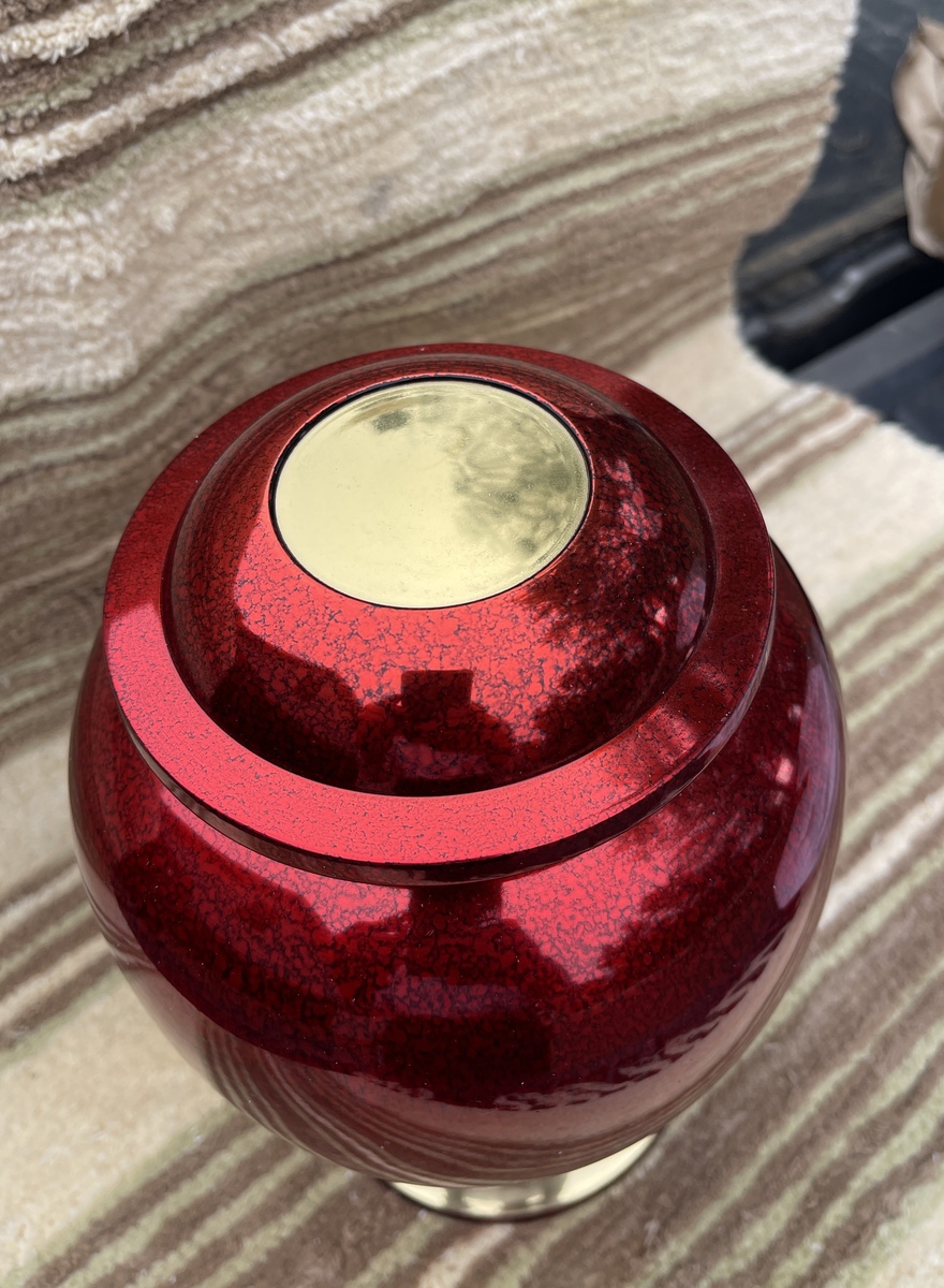 Hammered Red Lacquered with Gold Band Adult Cremation Urn