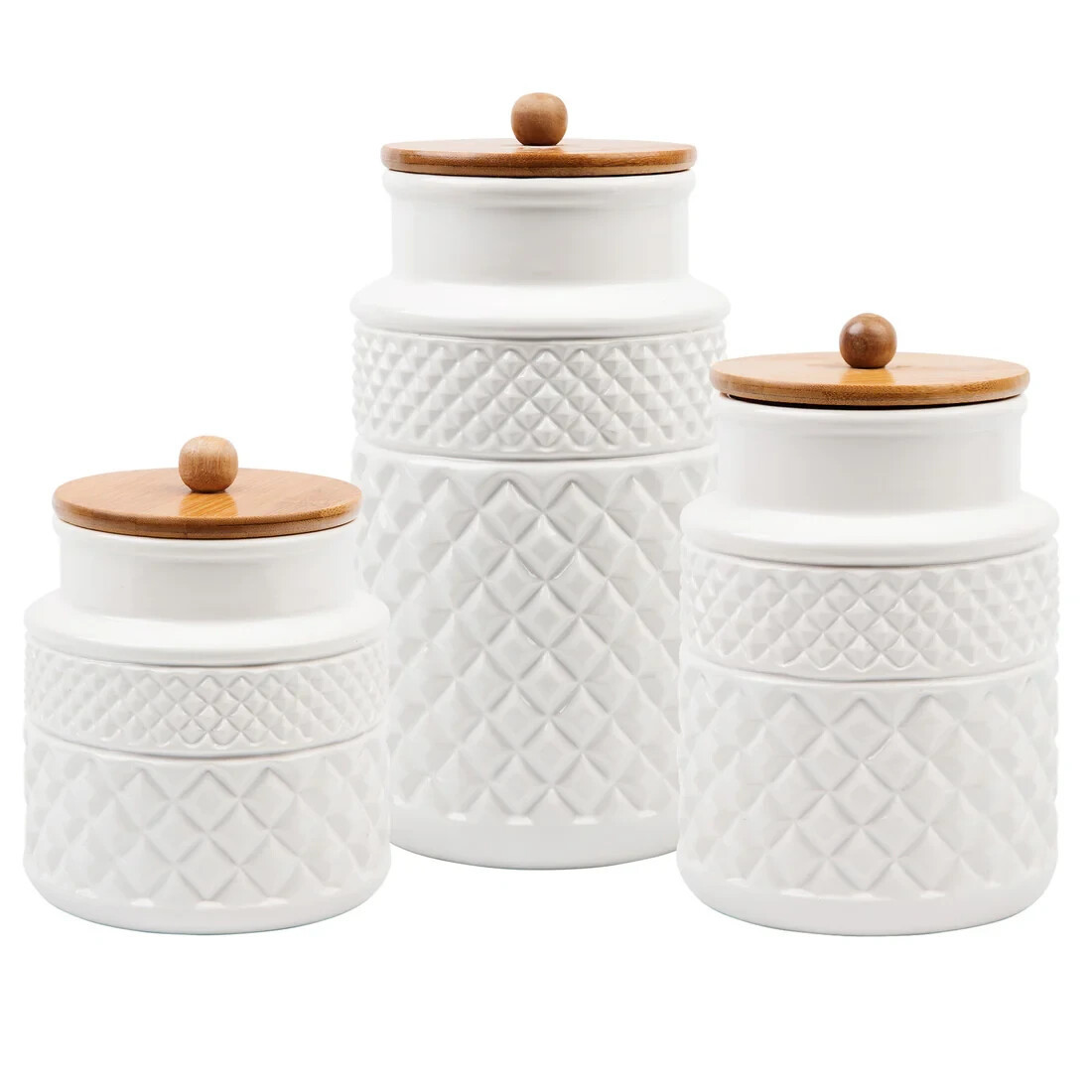 Set of 3 Faceted Ceramic Canisters with and similar items
