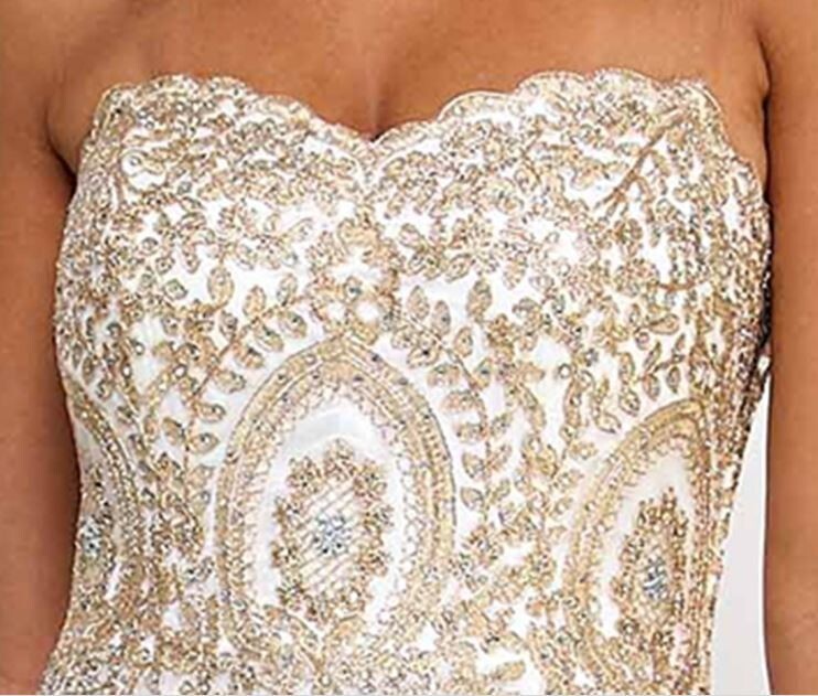 Say Yes Juniors' Strapless Embellished Ballgown Ivory/Gold Size:3/4US Retail$199