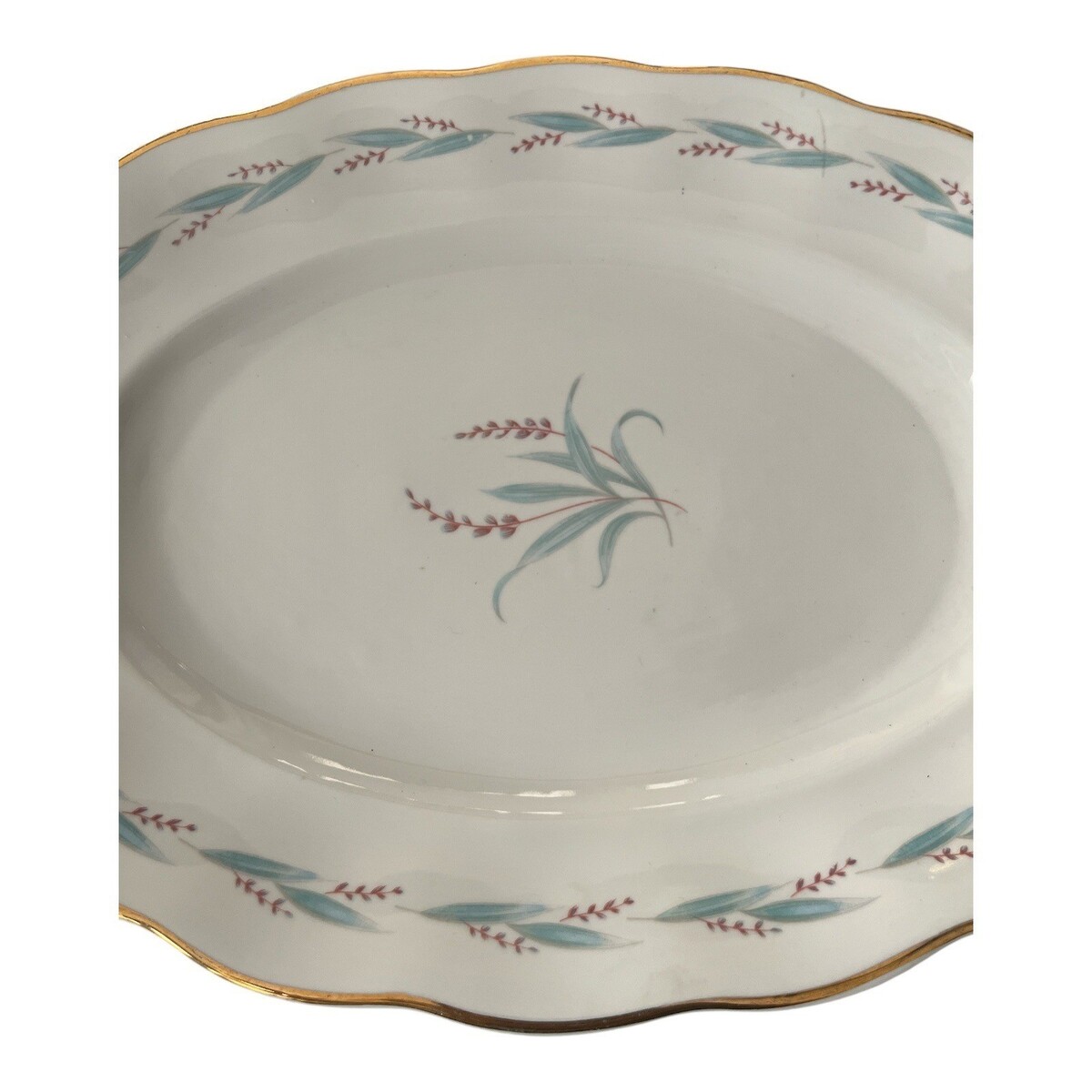 Vintage Korona Poland Floral Oval Serving Platter Gold Trim