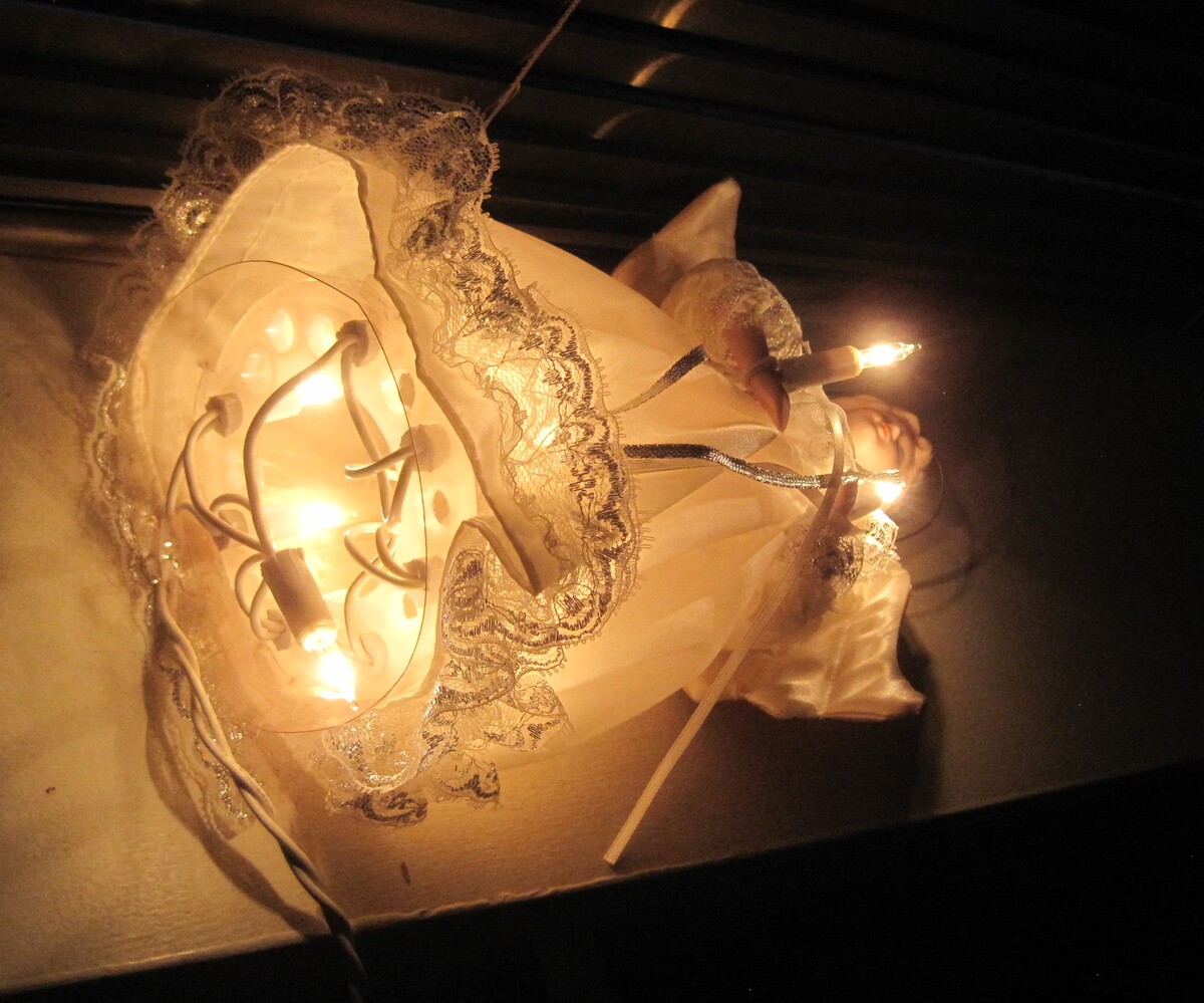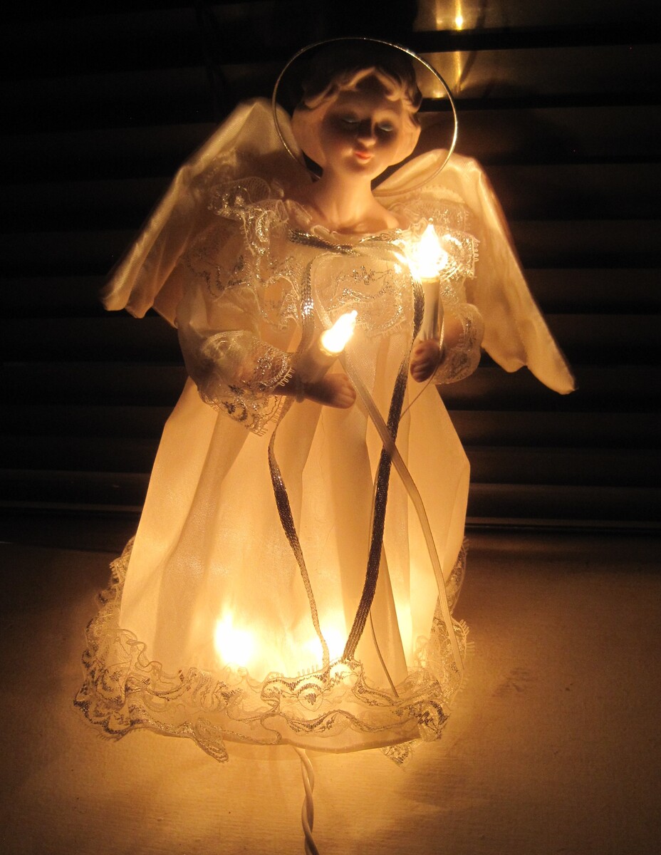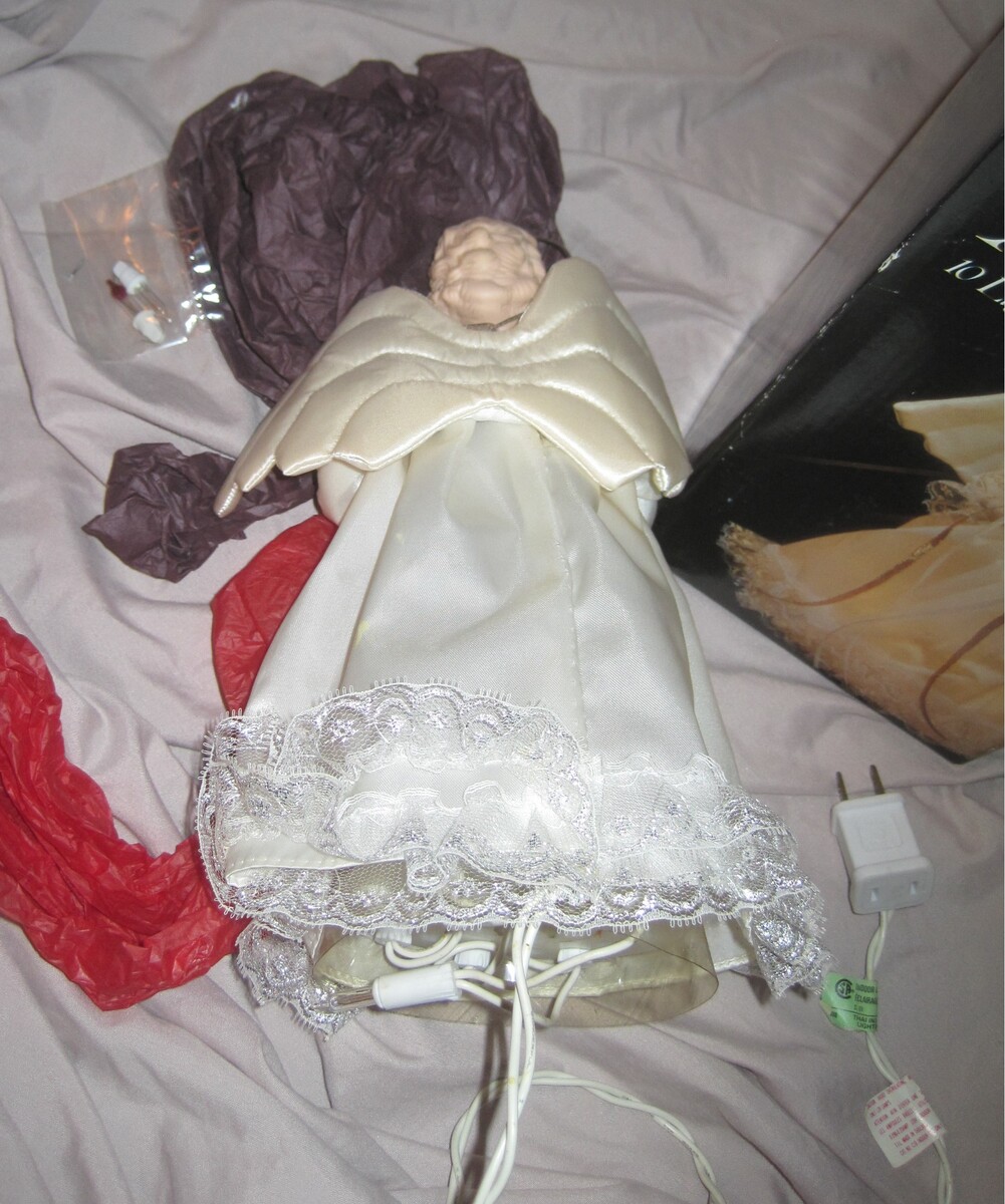 NOMA Porcelain Angel Holiday Christmas Soft Glow 10 Lite Tree Topper. Lights still work. She is in great condition.