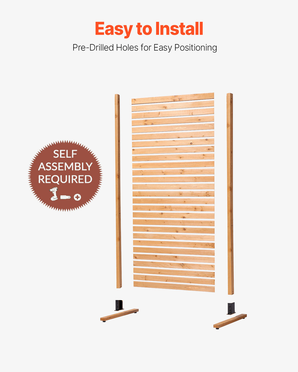VEVOR Wooden Privacy Screen 36"×76"Freestanding Stand Decorative Outdoor Divider