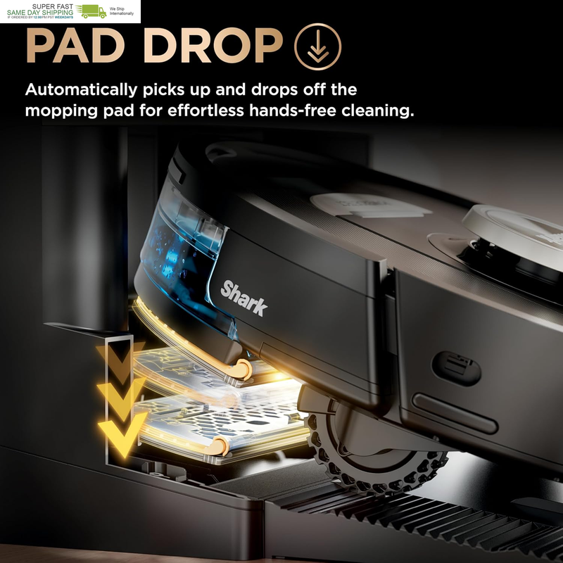WHAT'S INCLUDED: Shark PowerDetect Robot Vacuum and Mop, Nevertouch Pro Base, Shark Robot Side Brushes (2 pack), Shark Multi-Surface Cleaner Starter 12 oz Bottle, 2x Shark Odor Neutralizer Cartridge, Shark Robot Antimicrobial Mopping Pads (2 pack)