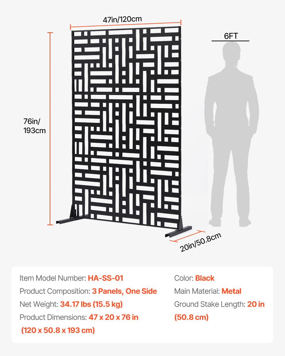 Elegant Privacy Solution: Enhance your living space with a stylish metal privacy screen that not only defines areas but seamlessly blends with any interior décor. This patio privacy screen adds a touch of elegance while creating a secluded, private space, providing you with both privacy and aesthetic appeal.