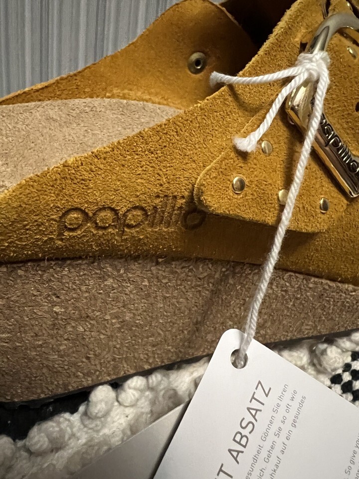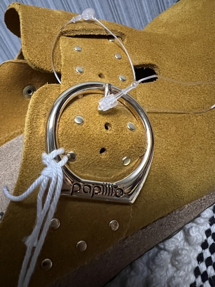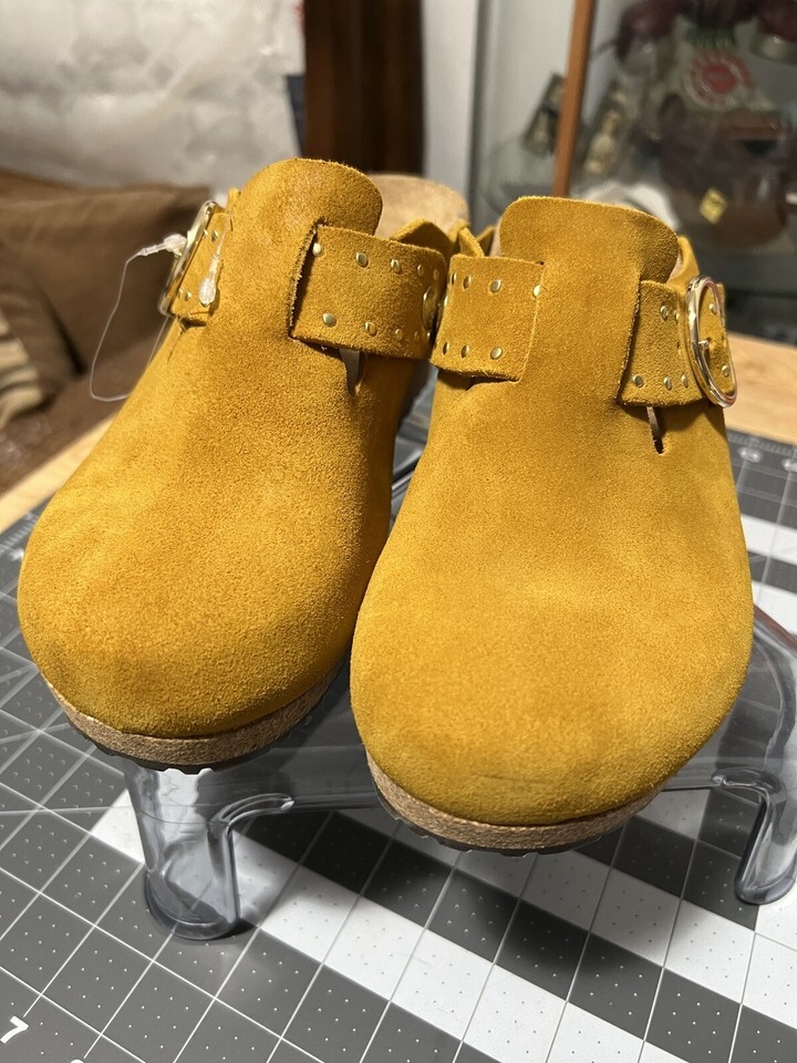 Papillio Women's US 9 Soley Ring-Buckle Wedge Sandals Sued Mustard New.