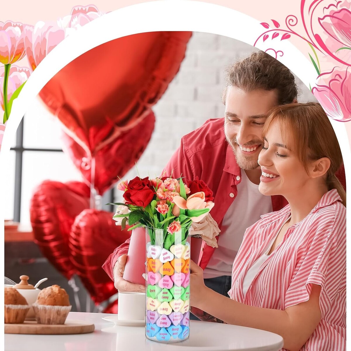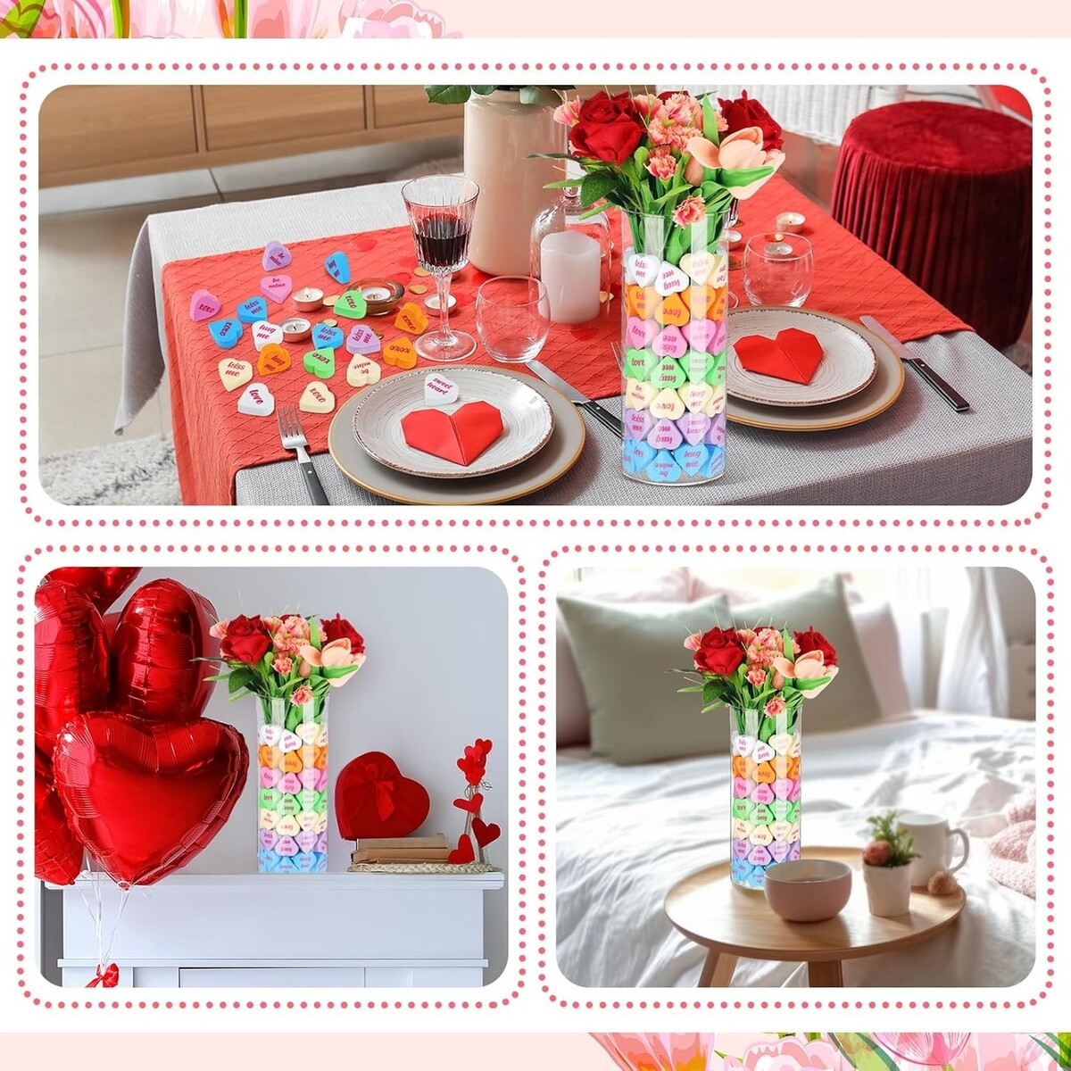 Valentine's Day Decor: elevate the ambience of your spaces this Valentine's Day with our decorations that feature an enticing color scheme of red and pink; The heart shaped vase fillers, measuring 5.5 cm/ 2.16 inches high and 5.5 cm/ 2.16 inches wide, making your decoration stand out with elegance