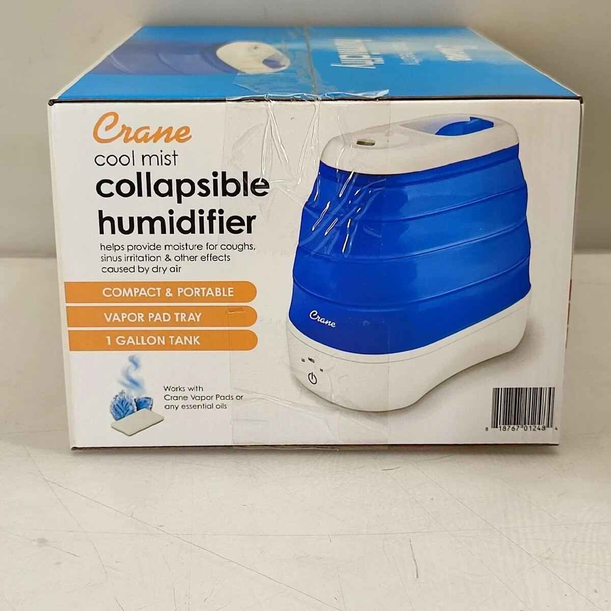 Crane Cool Mist Humidifier Collapsible Portable 1 Gallon Tank Capacity Coughs Sinus Relief