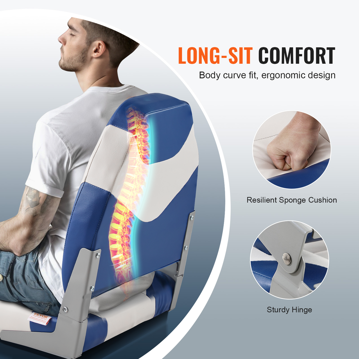 VEVOR Boat Seats 21.85" High Back Folding Sponge Captain Chair 2-Pack