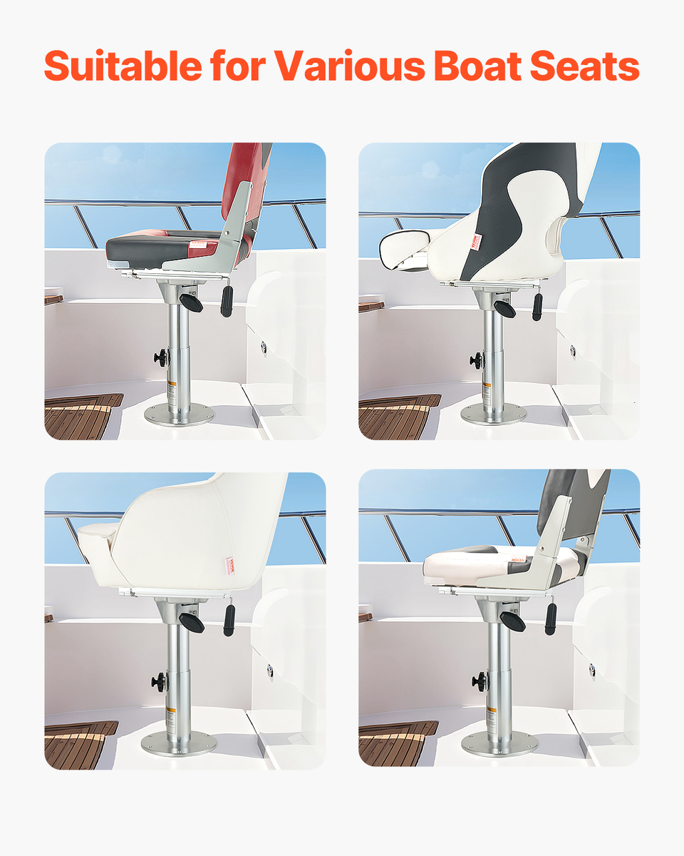 Widely Compatible: This versatile boat pedestal fits many types of boat seats, letting you enjoy water sports like fishing and boating on fishing boats, yachts, canoes, and more!