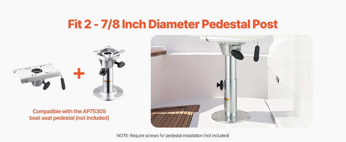 For 2-7/8" Base Posts: Our adjustable boat seat mount is designed for 2-7/8" diameter base posts. It cannot be used alone and is recommended to be paired with the AP75305 base (not included).