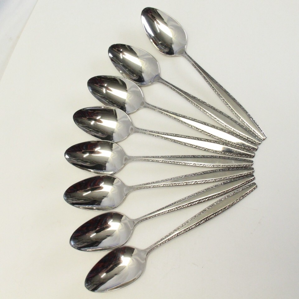 International Fascination Decorator Teaspoons 6 3/8" Stainless Lot of 8