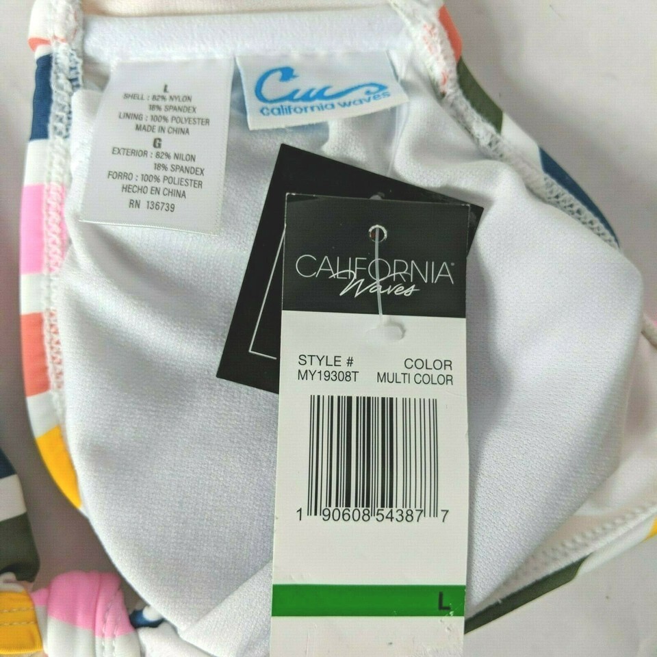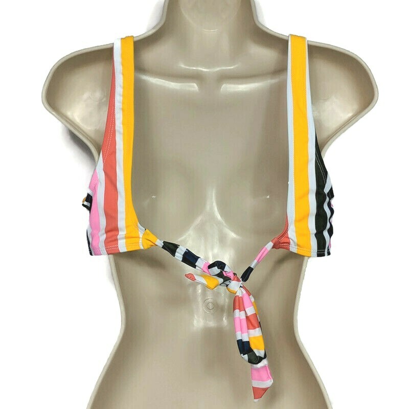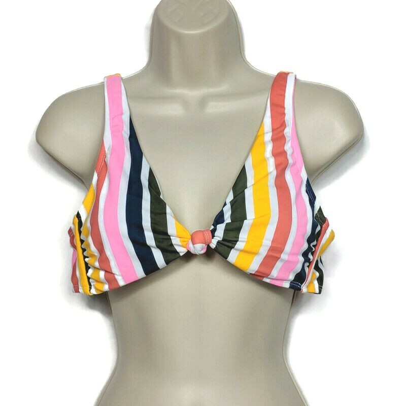 NWT California Waves Twist Front Bikini Swim Top Large Mulitcolor Striped Padded