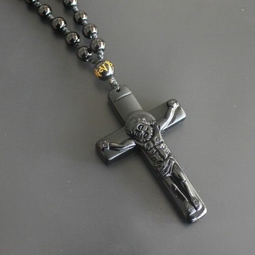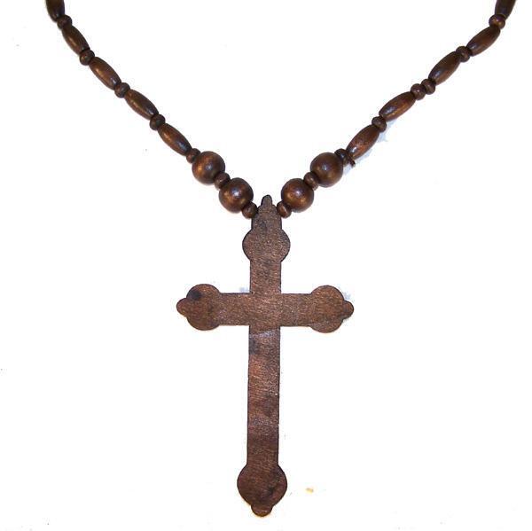 NECKLACE WOOD BEADS ARE SAME COLOR AS THE CROSS