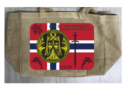 NORSEMAN BURLAP TOTE BAG #966 VIKING reusable art scandanavian