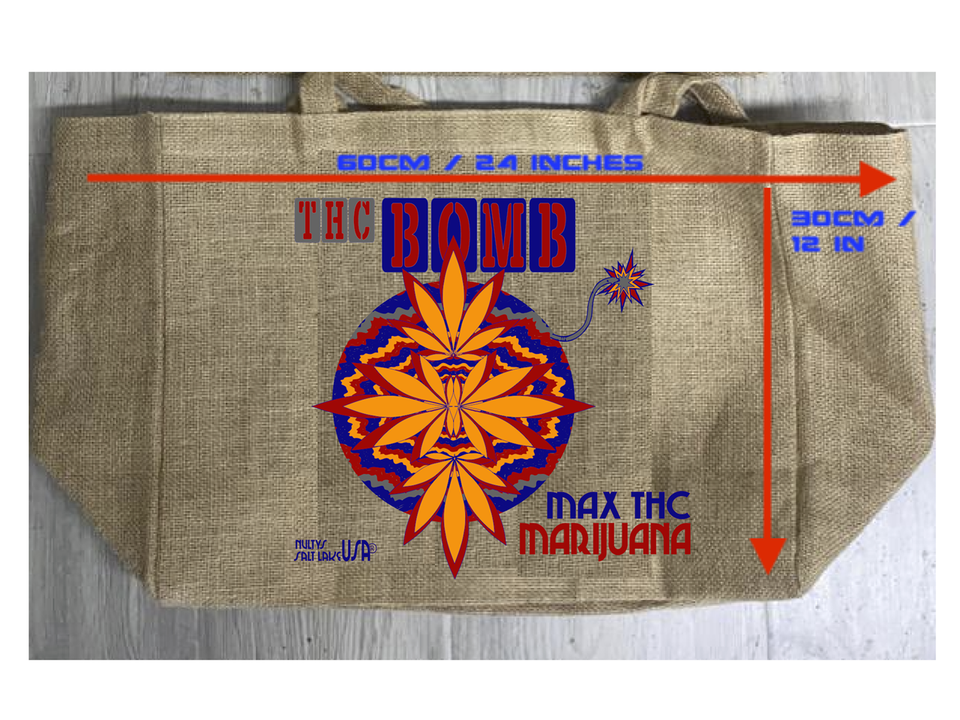 THC BOMB BURLAP TOTE BAG marijuana pot leaf psychedelic #923 reusable