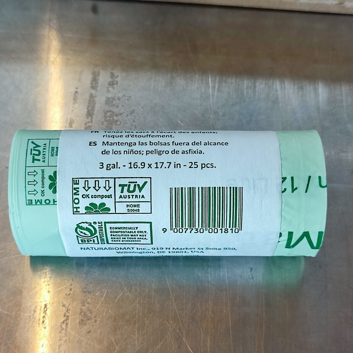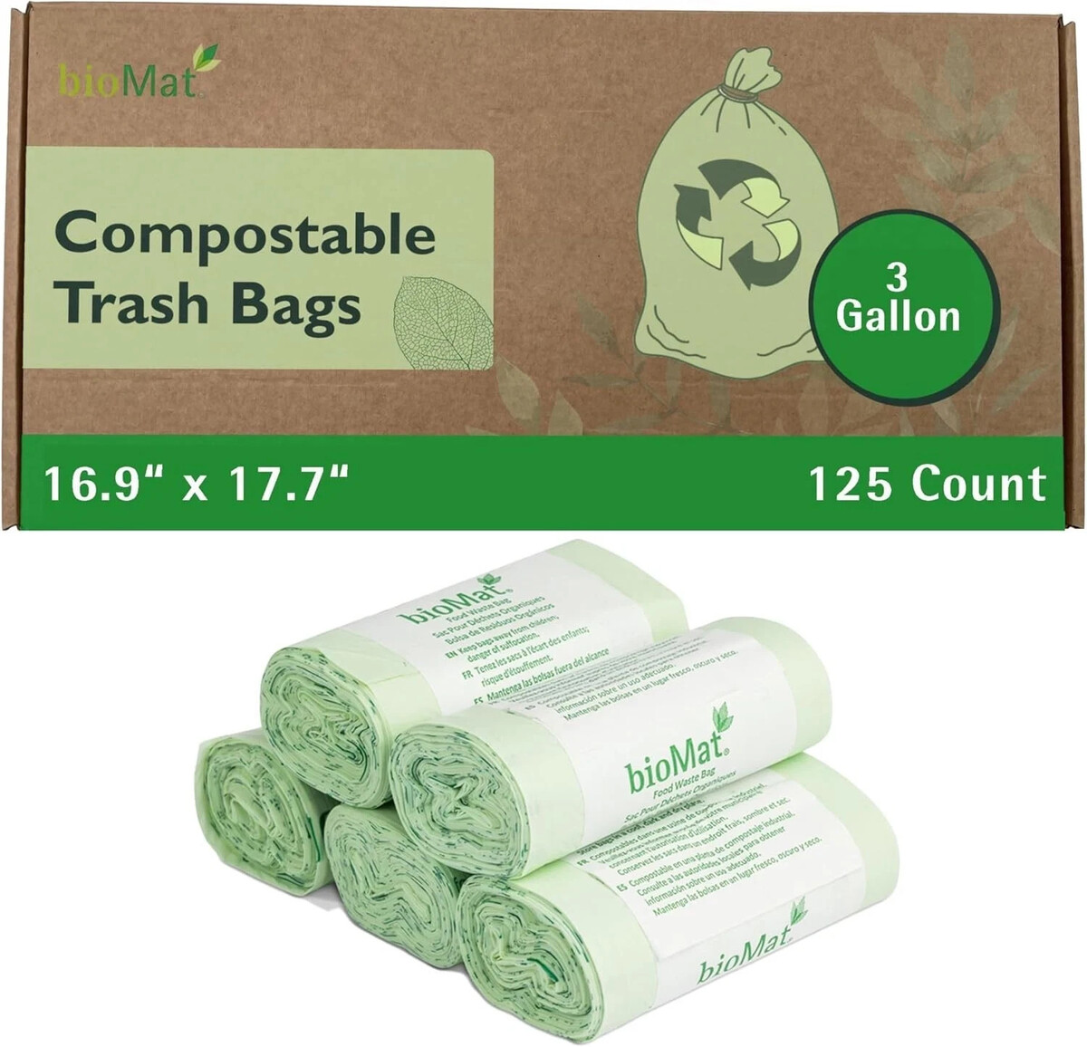 125 Biomat Kitchen Compostable Food Trash Bags 3 Gal. Capacity Biodegradable