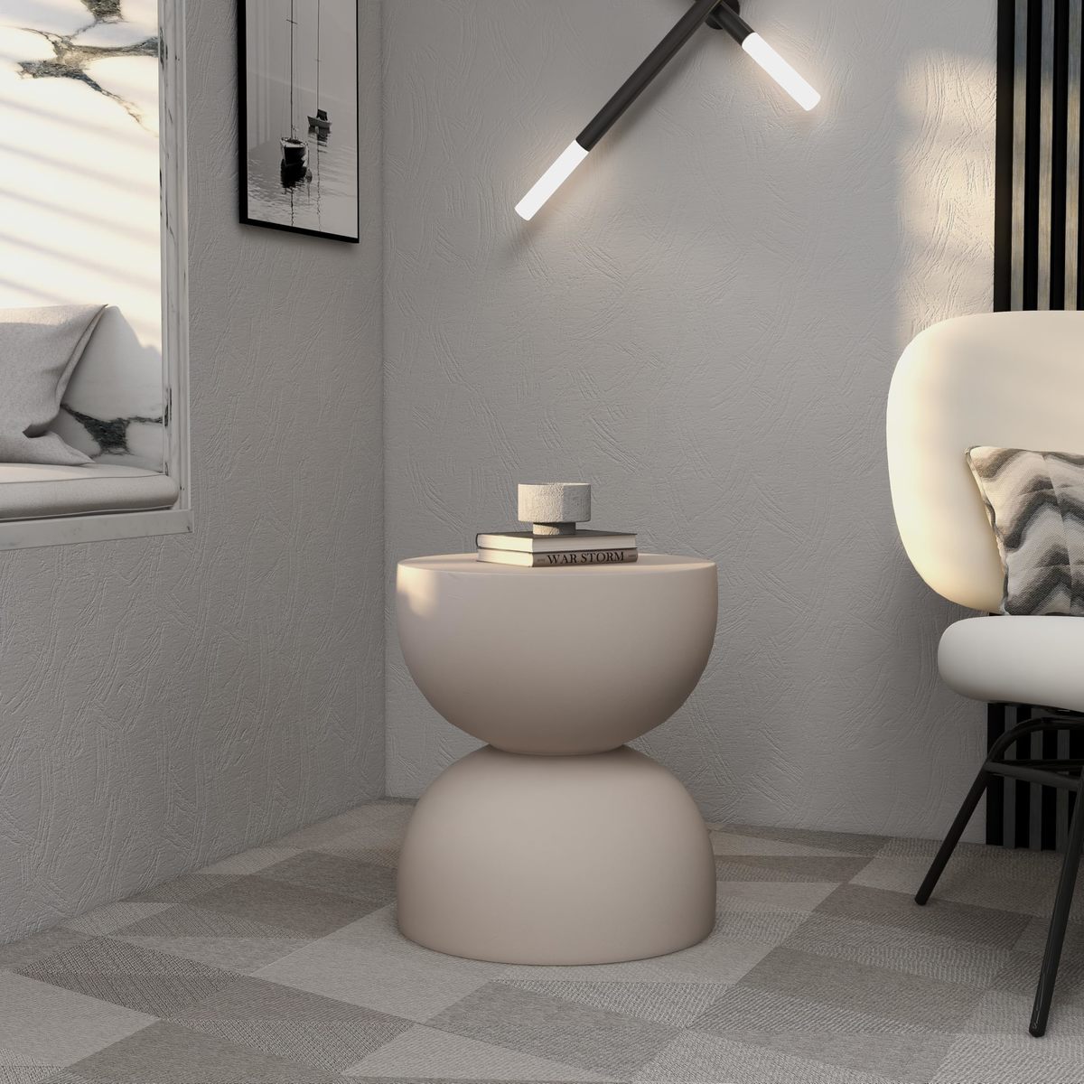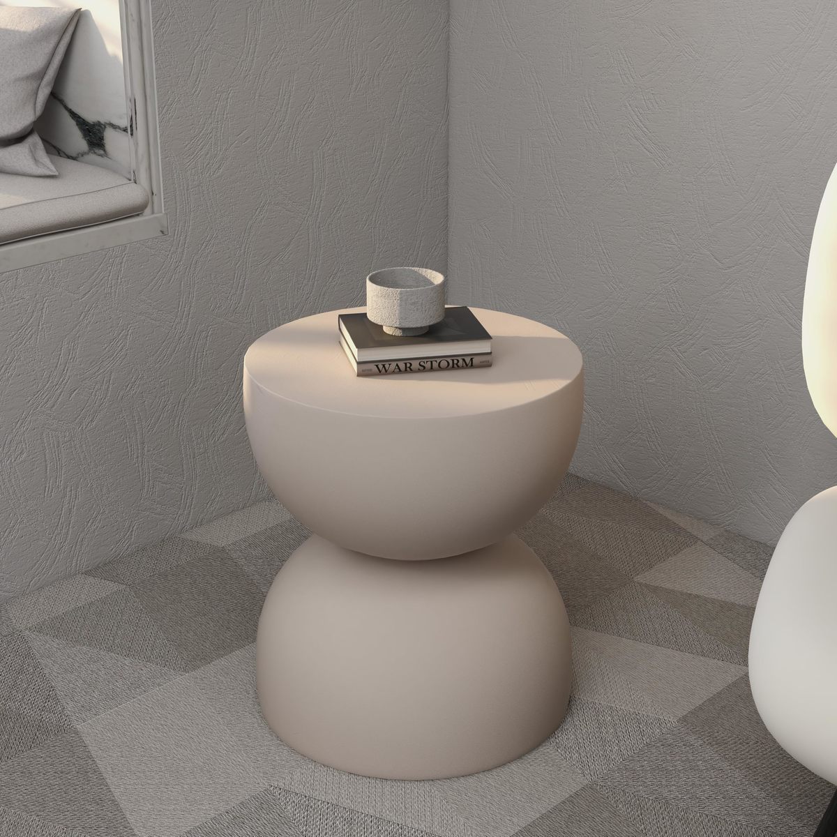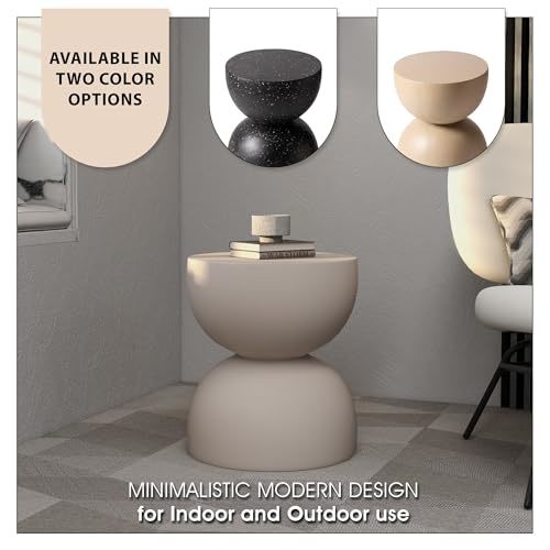 LeisureMod Minimalist Side Table, Fiber stone Round Hourglass Accent End Table S