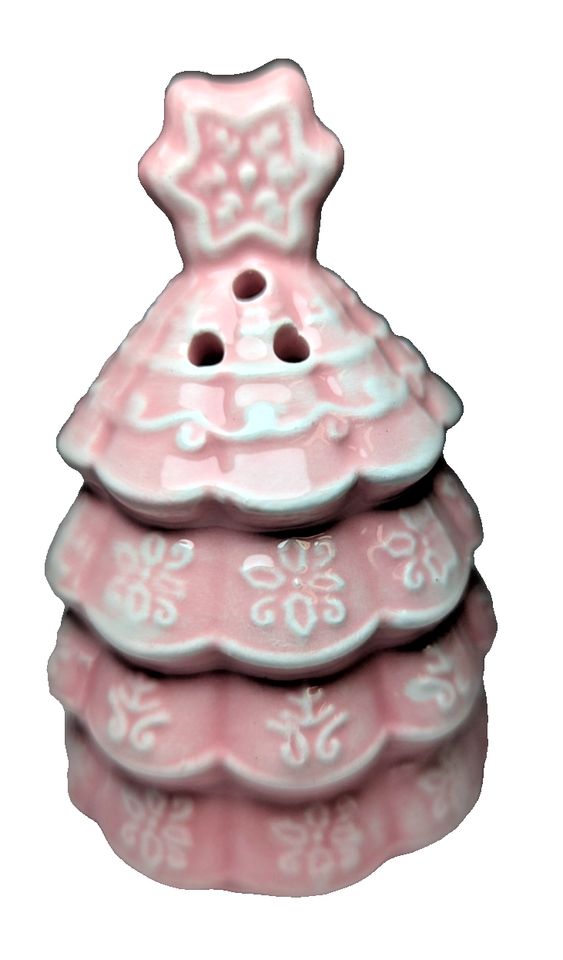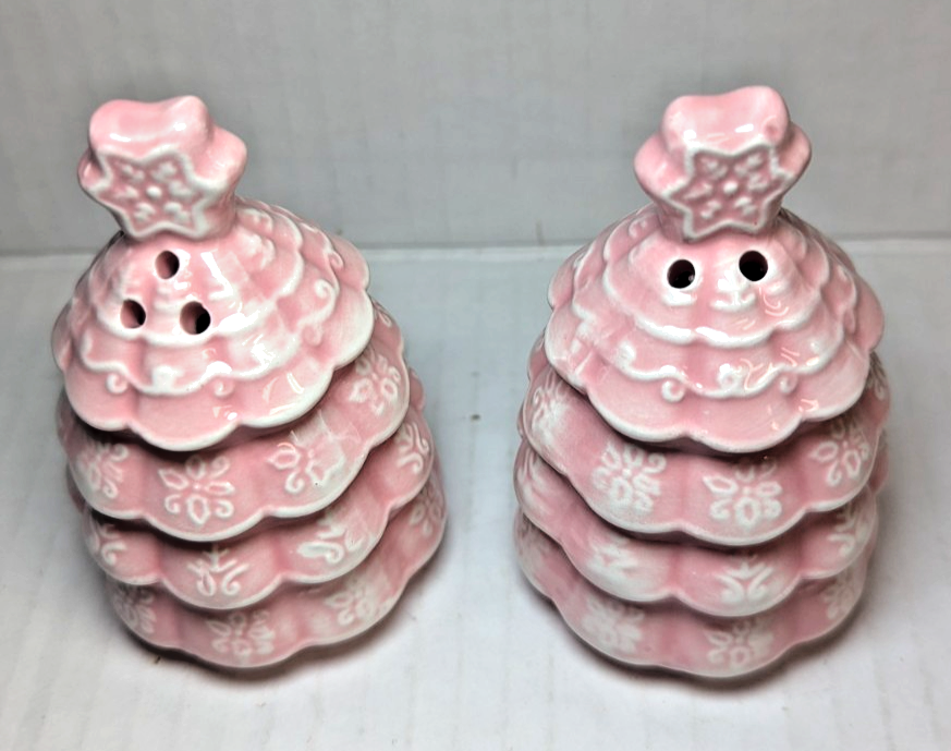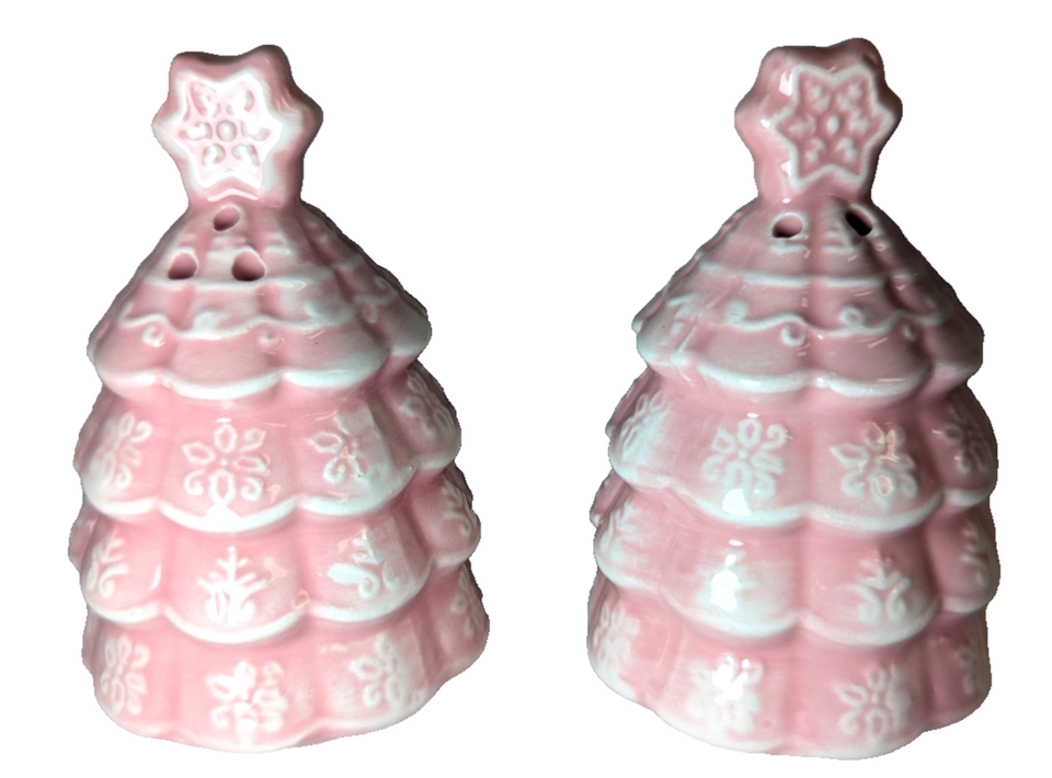 Retro Pink Christmas Tree Salt and Pepper Shakers Ceramic Holiday Kitchen Gift