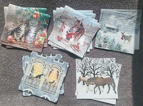 Christmas Tree Guest Towels Dinner Napkins Decoupage Art Primary Sealed 32