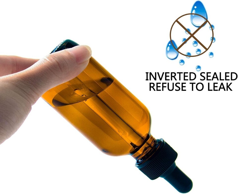 ?SUNLIGHT RESISTANT: The Glass Bottle is made of Corrosion-resistant amber glass. Colored glass protects against chemical decomposition so that your essential oils would be safely protected from damaging sunlight and the risk of rapid evaporation.