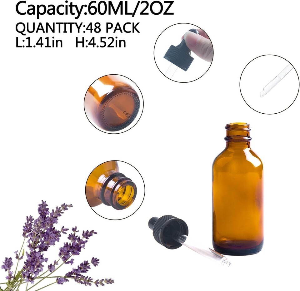 24 Pack 2oz Amber Dropper Bottles 60ml Tincture Bottles with Eye Dropper For Oil