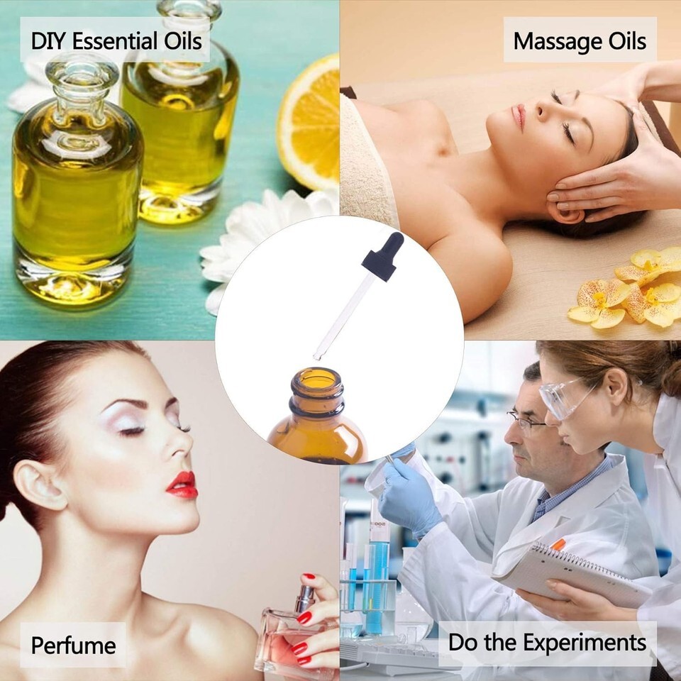 ?DESIGNED FOR ESSENTIAL OIL: The black cap can screw on properly to prevent leaks; Our glass pipettes are 3.6 inches, longer than other brands in the market to prevent wasting your precious oils, and thicker to prevent breaking easily.